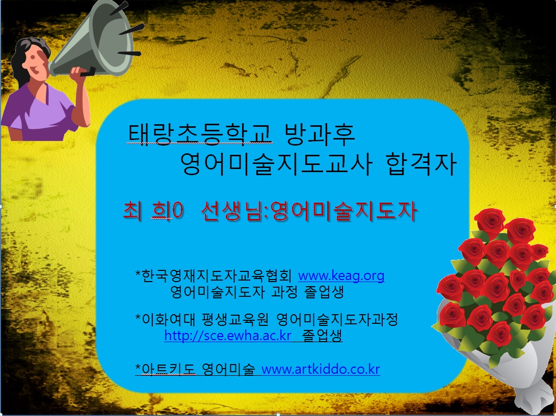 ŶûÃʵîÇб³ ¹æ°úÈÄ ¿µ¾î¹Ì¼ú±³»ç ÇÕ°ÝÀÚ ¹ßÇ¥