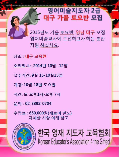 ¿µ¾î¹Ì¼úÁöµµÀÚ °úÁ¤ 2±Þ ´ë±¸Áö¿ª¿¡ ¼º¿ø¿¡ ÈûÀÔ¾î ÈûÀÔ¾î 2014Çг⵵ Åä¿ä¹ÝÀ» °³¼³ÇÕ´Ï´Ù.
