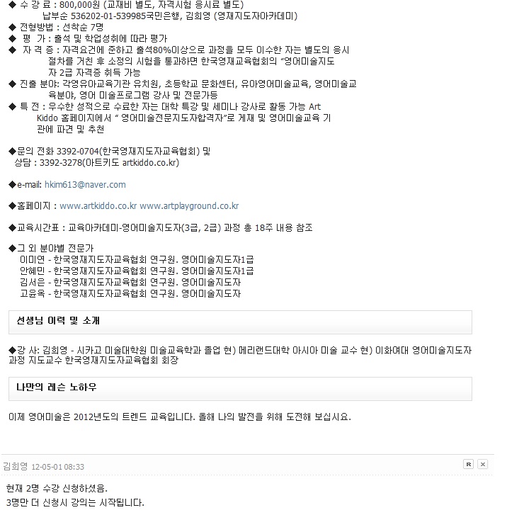 ¿µ¾î¹Ì¼úÁöµµÀÚ°úÁ¤ ¿©¸§ ´Ü±â °ÀÇ Á¢¼ö±â°£: 5¿ù 31ÀϱîÁö °ÀÇ·á : 800,000¿ø ÁöÁ¤±³À°Àå¼Ò : °³² Sapce ¼¼¹Ì³ª½Ç (°³²¿ª 11¹ø Ãⱸ ¹ö°ÅÅ· µÞºôµù)